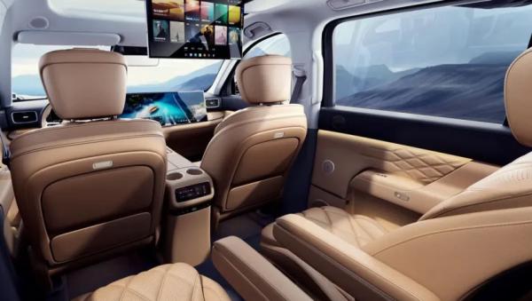В салоне три ряда сидений установленные по формуле 2+2+2, то есть Exeed ET8 является шестиместным автомобилем.