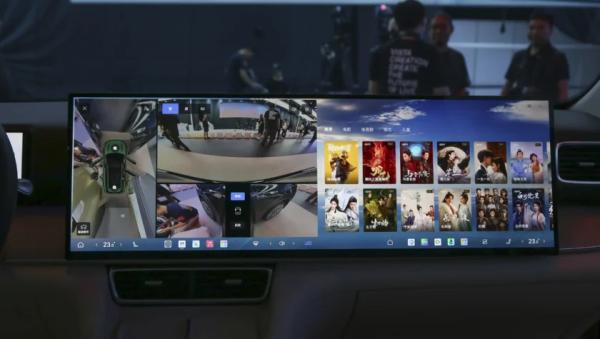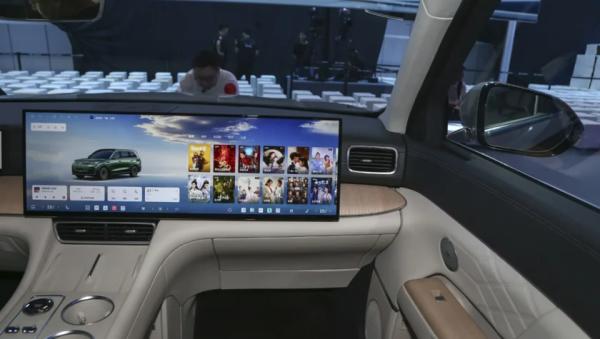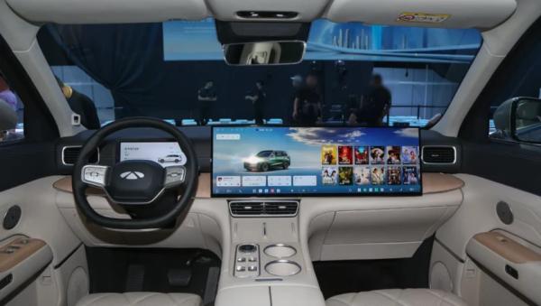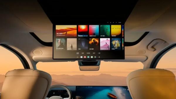 Опять же, на передней панели знакомая архитектура по автомобилям марки Lixiang: по центру установлен огромный 30-дюймовый дисплей растянутый до зоны переднего пассажира, а перед водителем двухспицевое рулевое колесо, за которым относительно компактный экран с рисованными виртуальными приборами (10,25-дюймов). Для пассажаиров задних рядов на потолке установлен отдельный монитор 17,3-дюйма.