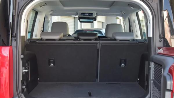 Но это по-прежнему суровый вездеход с «квадратной» формой кузова. Из особенностей можно выделить решетку радиатора разделенную на пять секций, в которую по бокам аккуратно интегрированы прямоугольной формы фары. На корме багажная дверь с полноценной «запаской» разделена на две части: снизу распашная дверца, а сверху подъемное стекло.
